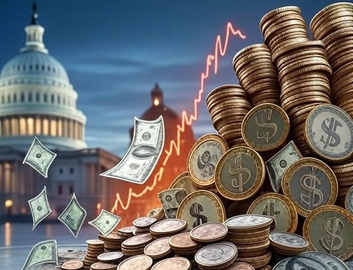 - Augmentation de l’endettement : La dette publique des États-Unis a atteint des niveaux records, dépassant 33 000 milliards de dollars, soit environ 120 % du PIB. Les déficits budgétaires persistants, aggravés par des dépenses publiques élevées, ont accentué cette dynamique.