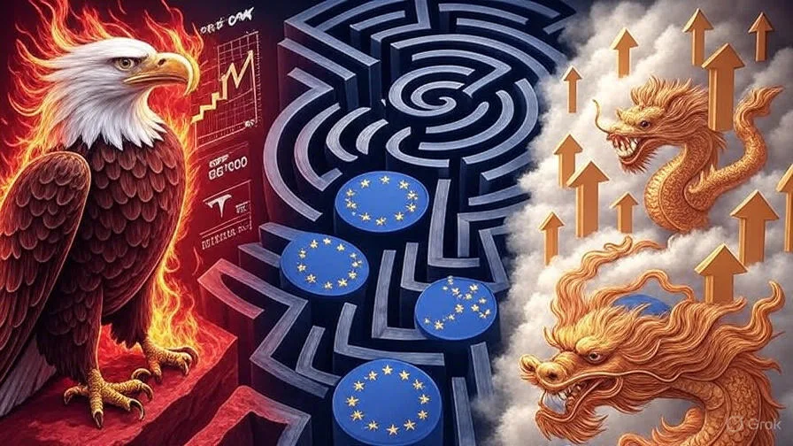 À l’opposé de cet enthousiasme atlantique, l’Europe traîne des pieds dans un marasme économique qui frustre les investisseurs. La zone euro, avec sa monnaie unique mais ses politiques budgétaires fragmentées, peine à trouver un second souffle. La croissance potentielle y est estimée à peine 1,2 % pour 2025 par la Commission européenne, contre plus de 2 % avant la pandémie. En France, l’instabilité politique – marquée par des élections législatives chaotiques en juin – amplifie les doutes, avec un déficit public flirtant les 5,5 % du PIB, selon Eurostat. Les actions européennes, comme le CAC 40 ou l’Euro Stoxx 50, sous-performent leurs homologues US de 15 % sur l’année, forçant les fonds internationaux à rapatrier leurs capitaux vers des rivages plus sûrs.